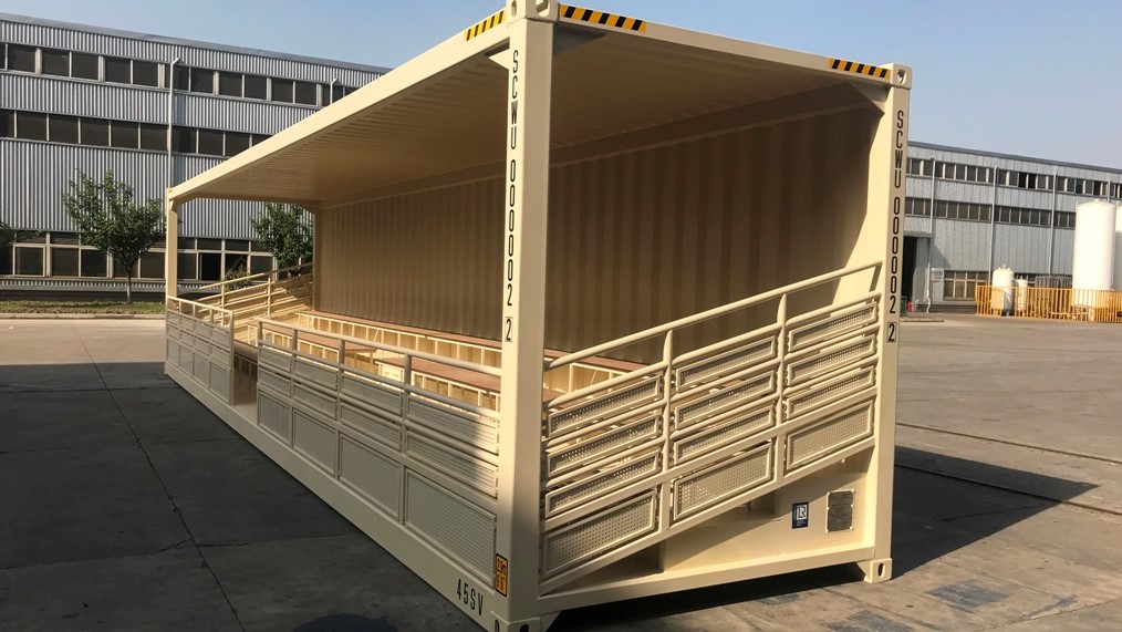 This 40ft bleacher shipping container will be delivered using only one option: